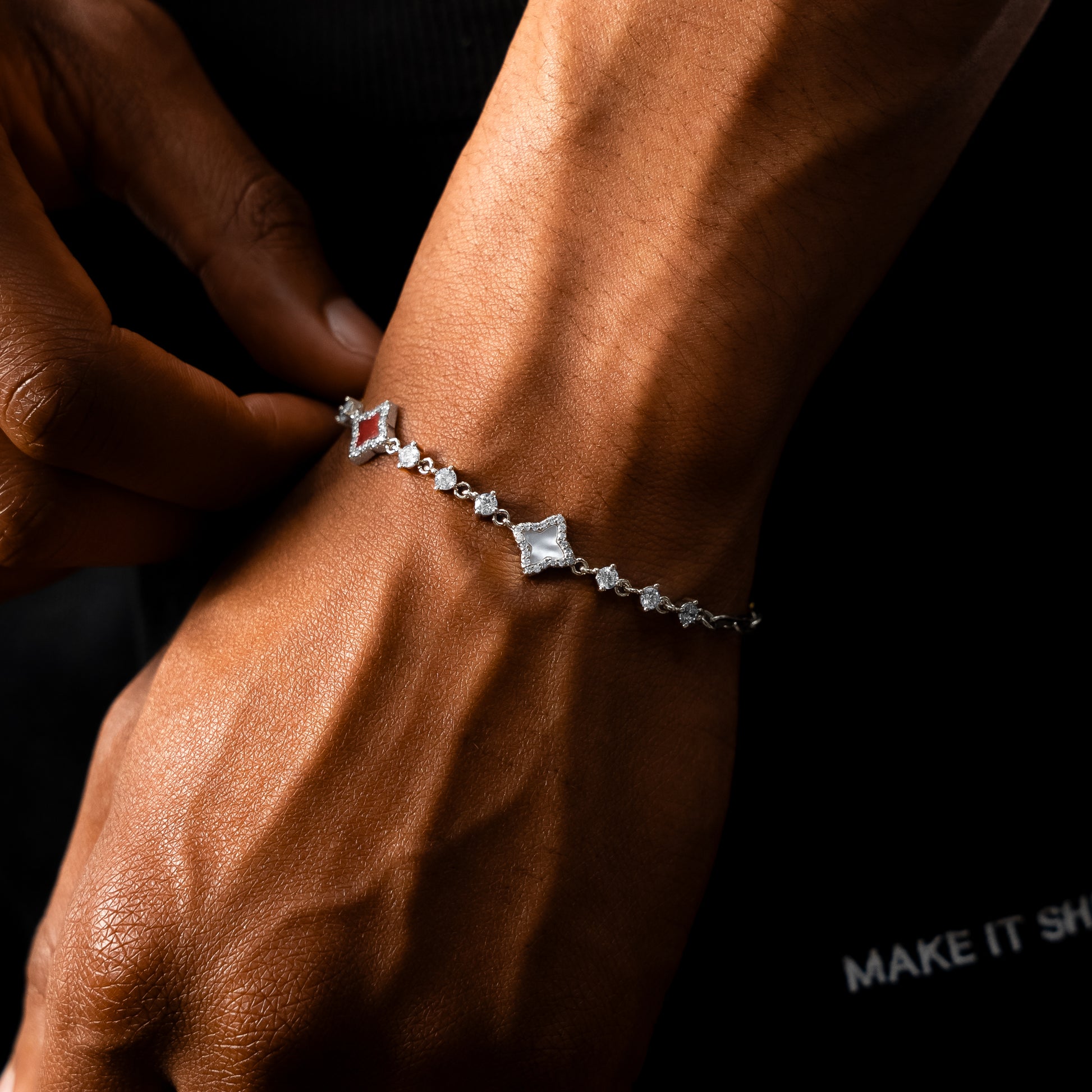 Découvrez notre Bracelet Flower Tennis, une pièce exquise qui marie l'élégance intemporelle du bracelet tennis et la délicatesse des fleurs. Chacune des fleurs, ornée d'une pierre imitation nacre ou cornaline et d'une épaisseur de 8 mm, ajoute une touche de charme et de sophistication à ce bracelet de 3 mm.
