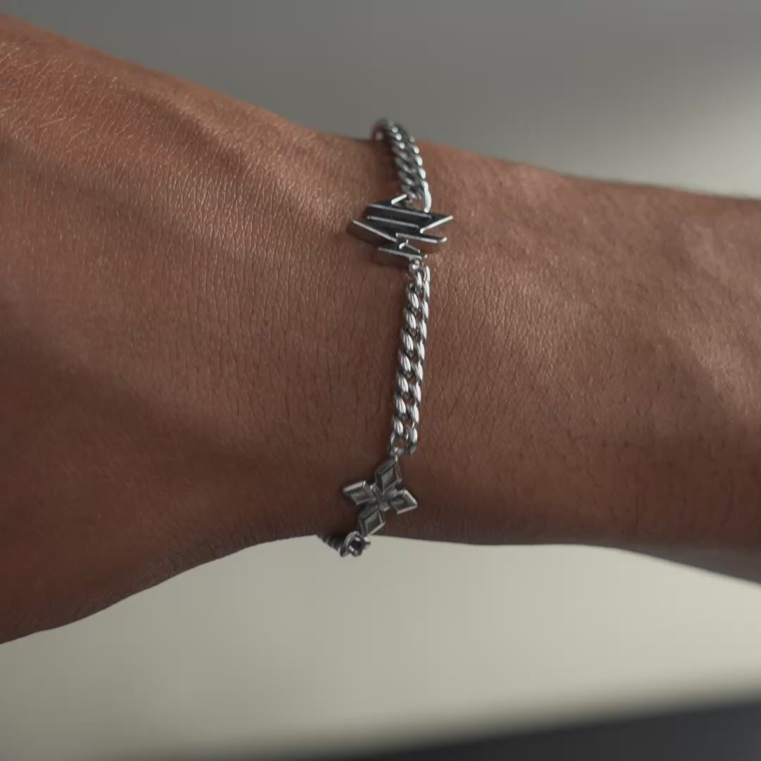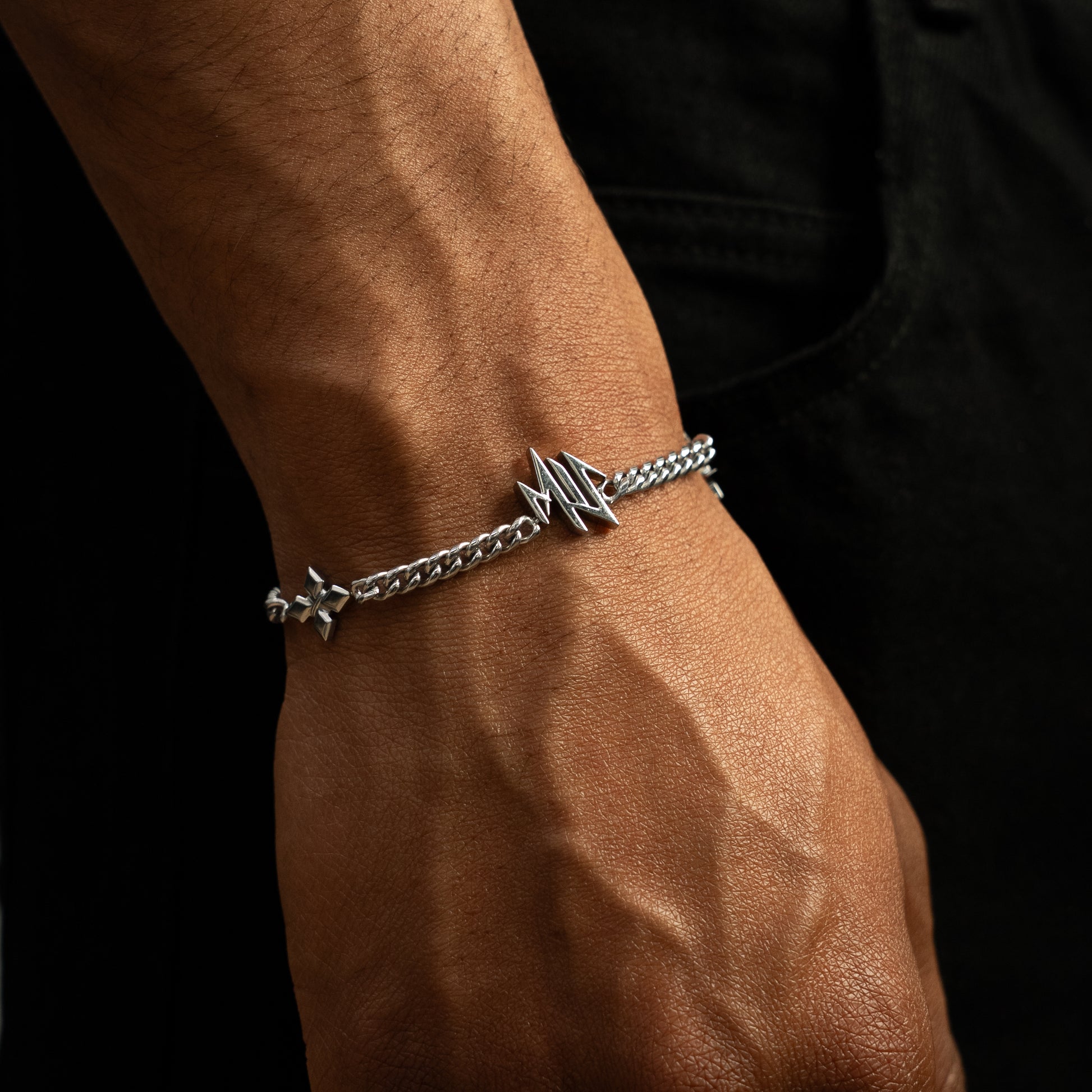 Le Bracelet MIS Cuban réunit les trois symboles emblématiques de Make It Shine : la croix étoilée, le logo double étoile et le sigle MIS.