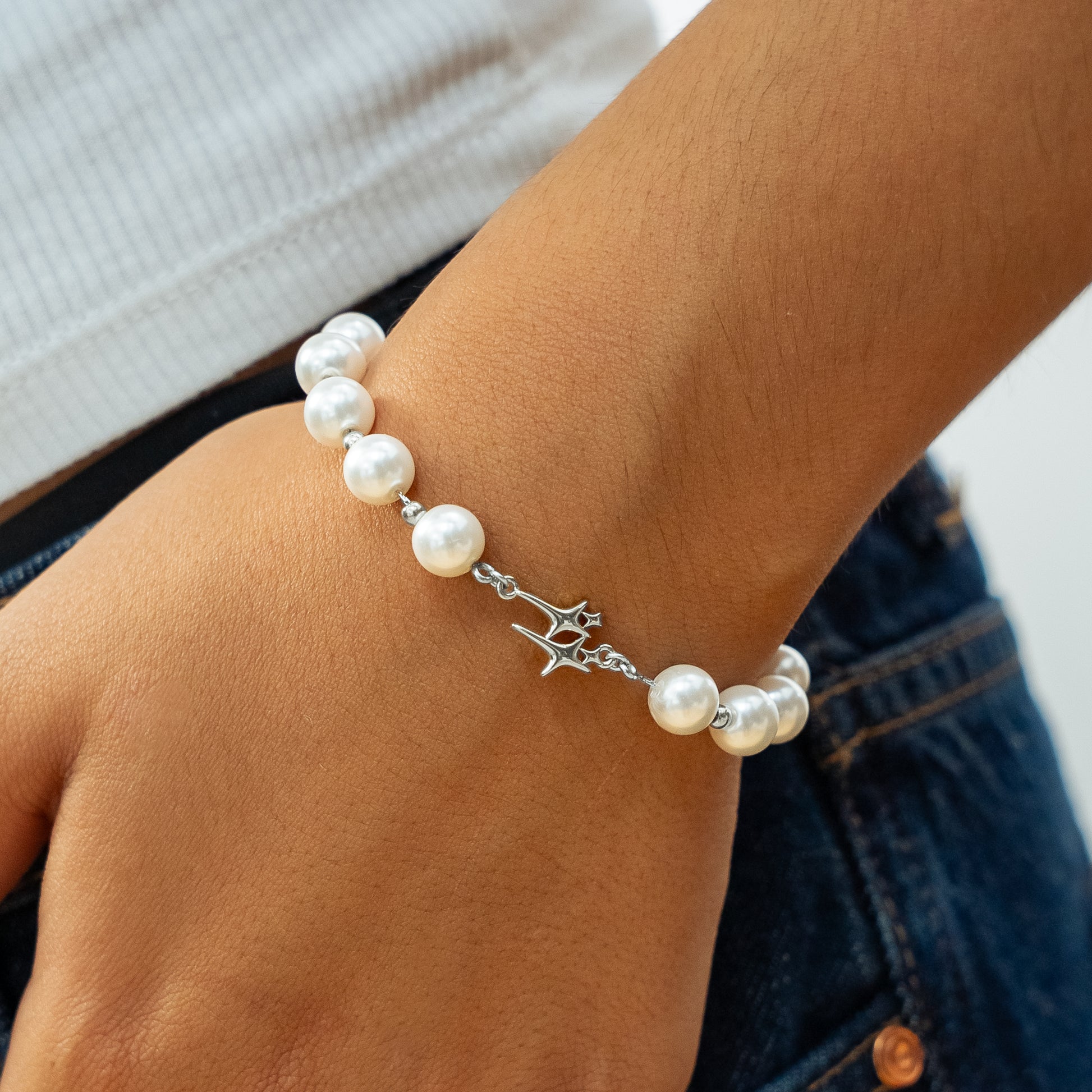 Découvrez notre bracelet perlé Double Stars, une pièce à la fois minimaliste et éclatante. Composé de perles blanches de 8 mm, il se distingue par un double logo Make it Shine positionné au centre, apportant une touche subtile et élégante. Une création épurée qui allie douceur et caractère, idéale pour compléter un look raffiné avec une signature discrète.