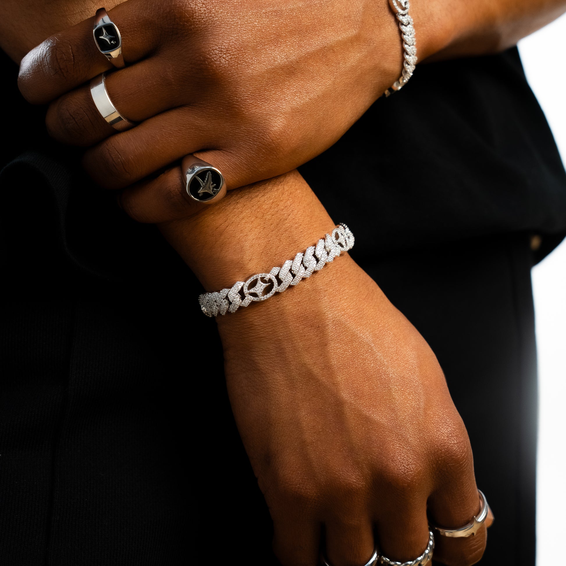 Découvrez notre bracelet Prong Link 10 mm, une pièce imposante et sophistiquée qui incarne pleinement l’ADN de Make it Shine. Son design unique allie des maillons prong link entièrement sertis d’oxydes de zirconium scintillants à des logos Make it Shine subtilement intégrés entre eux. Un éclat incomparable et une signature forte pour un bijou qui ne passe pas inaperçu.
