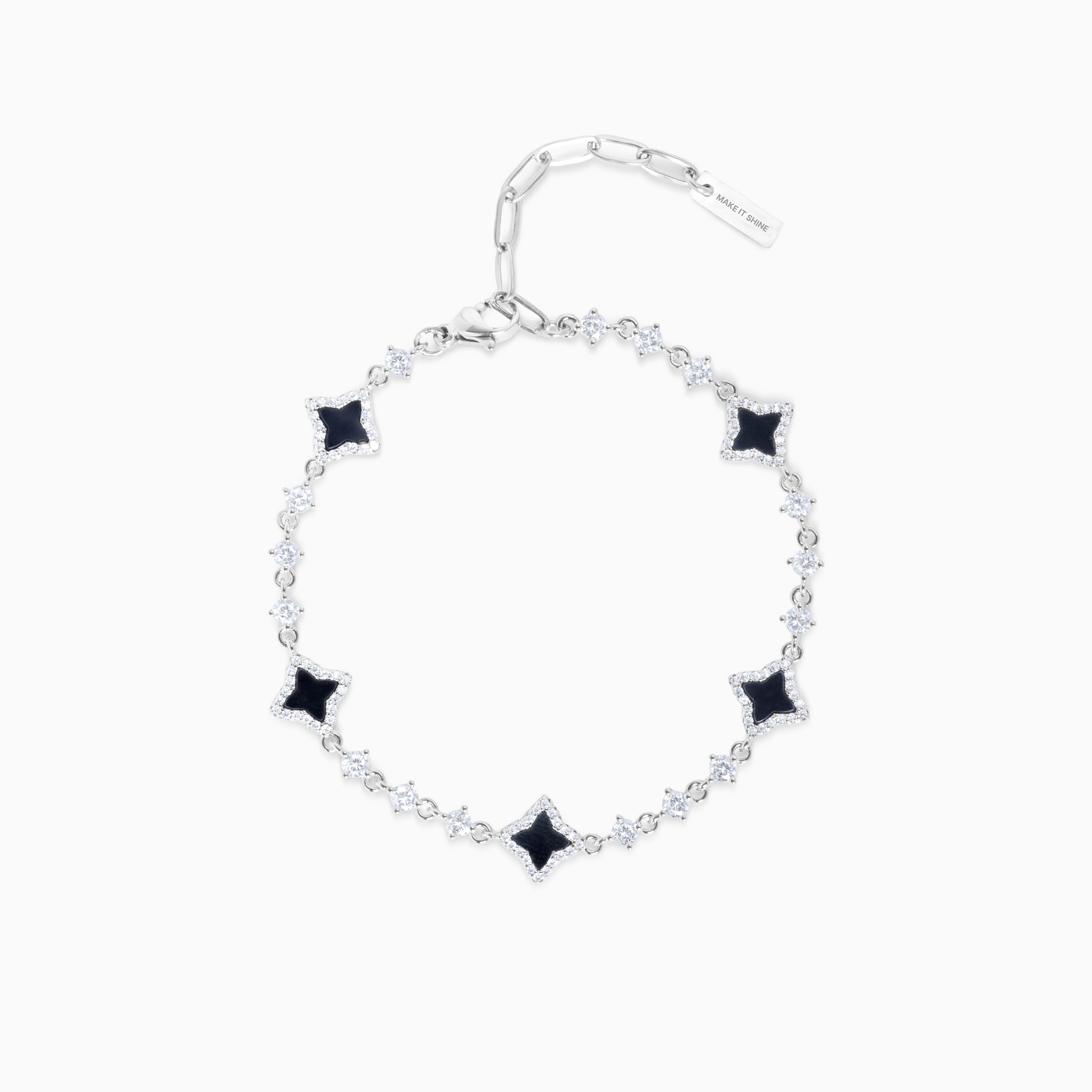 Découvrez notre Bracelet Flower Tennis, une pièce exquise qui marie l'élégance intemporelle du bracelet tennis et la délicatesse des fleurs. Chacune des fleurs, ornée d'une pierre imitation onyx et d'une épaisseur de 8 mm, ajoute une touche de charme et de sophistication à ce bracelet de 3 mm.