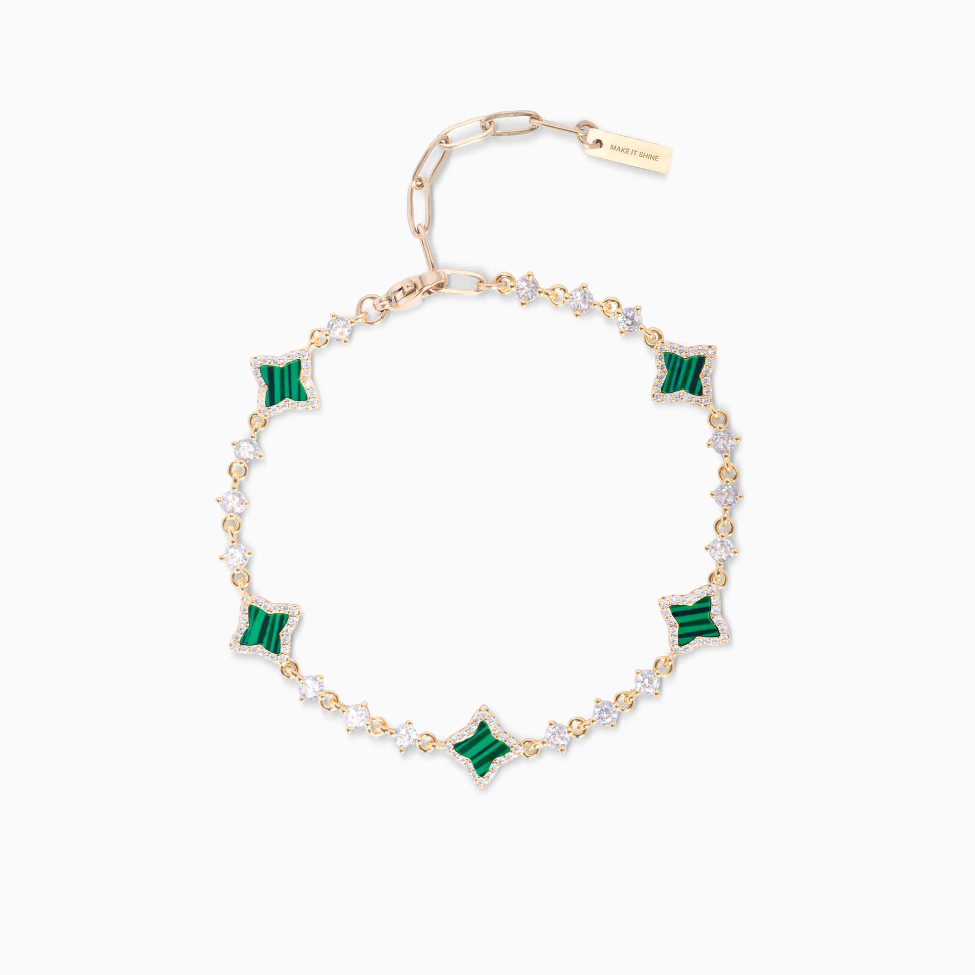 Découvrez notre Bracelet Flower Tennis, une pièce exquise qui marie l'élégance intemporelle du bracelet tennis et la délicatesse des fleurs. Chacune des fleurs, ornée d'une pierre imitation malachite et d'une épaisseur de 8 mm, ajoute une touche de charme et de sophistication à ce bracelet de 3 mm.