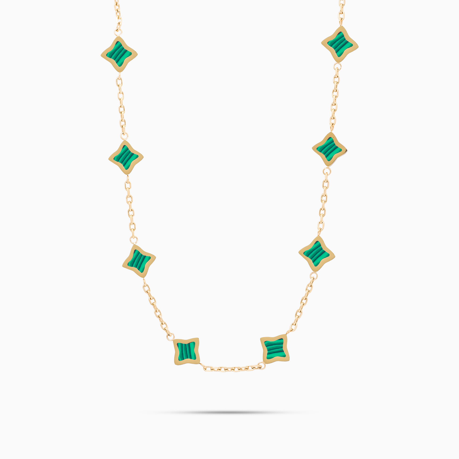 Découvrez notre Chaîne Flower, une pièce exquise qui marie l'élégance intemporelle de la chaîne câble et la délicatesse des fleurs. Chacune des fleurs, ornée d'une pierre imitation malachite et d'une épaisseur de 8 mm, ajoute une touche de charme et de sophistication à cette chaîne de 2 mm.