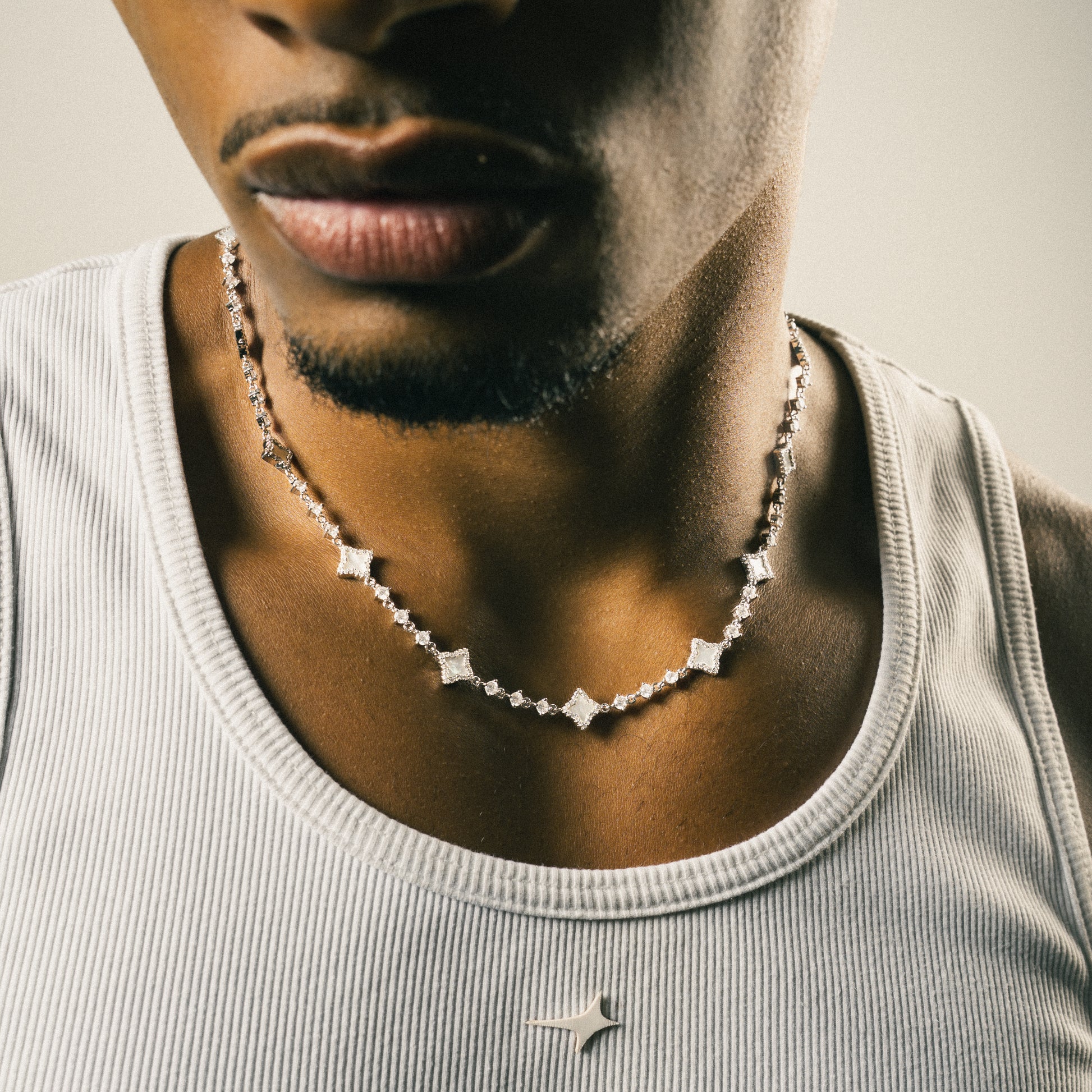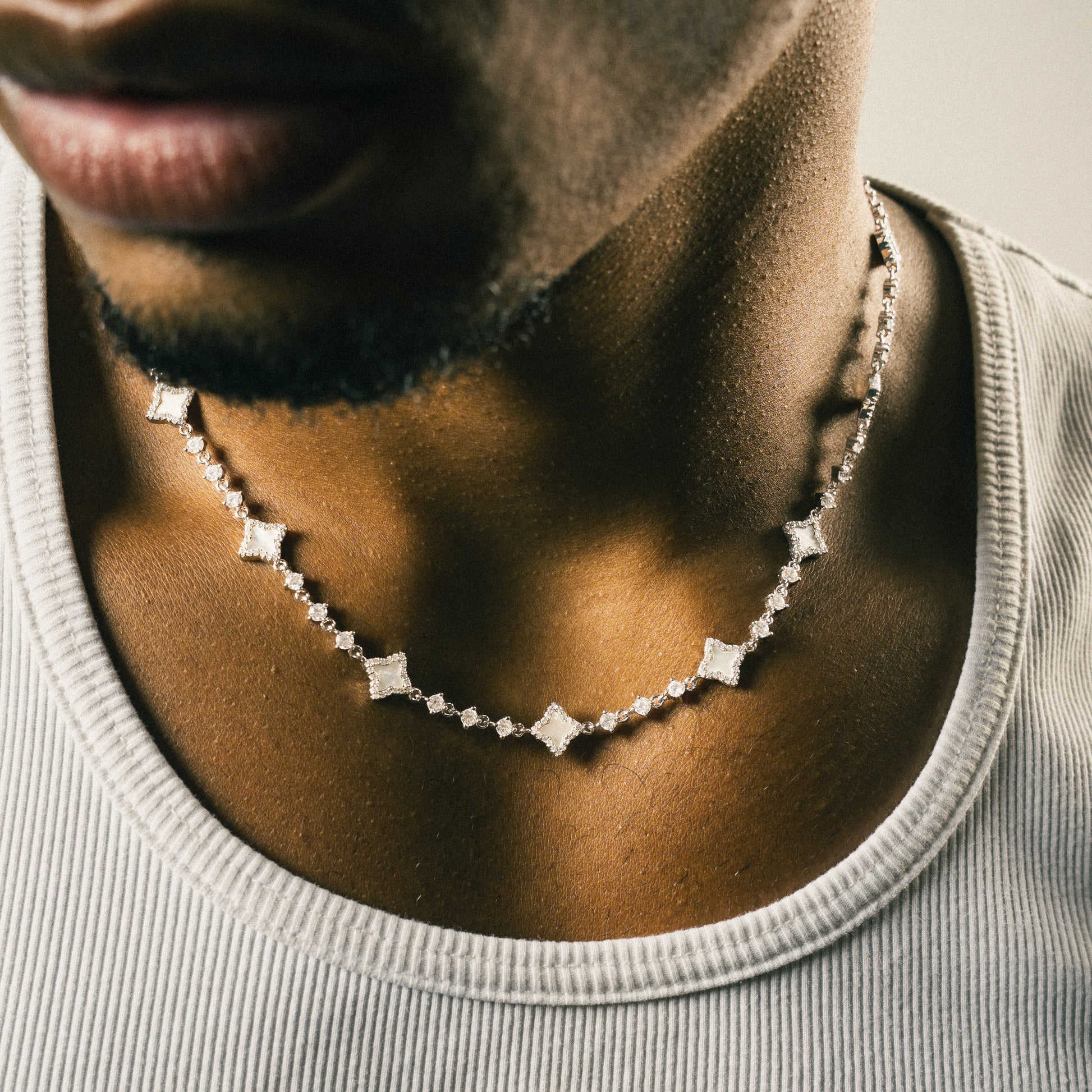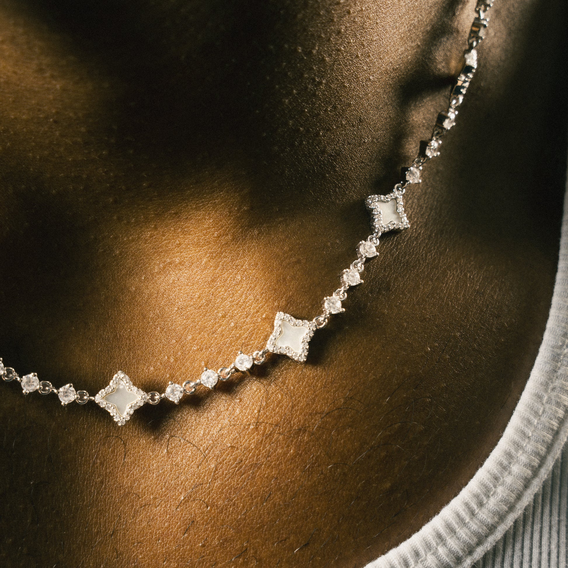 Découvrez notre Chaîne Flower Tennis, une pièce exquise qui marie l'élégance intemporelle de la chaîne tennis et la délicatesse des fleurs. Chacune des fleurs, ornée d'une pierre imitation nacre et d'une épaisseur de 8 mm, ajoute une touche de charme et de sophistication à cette chaîne de 3 mm.
