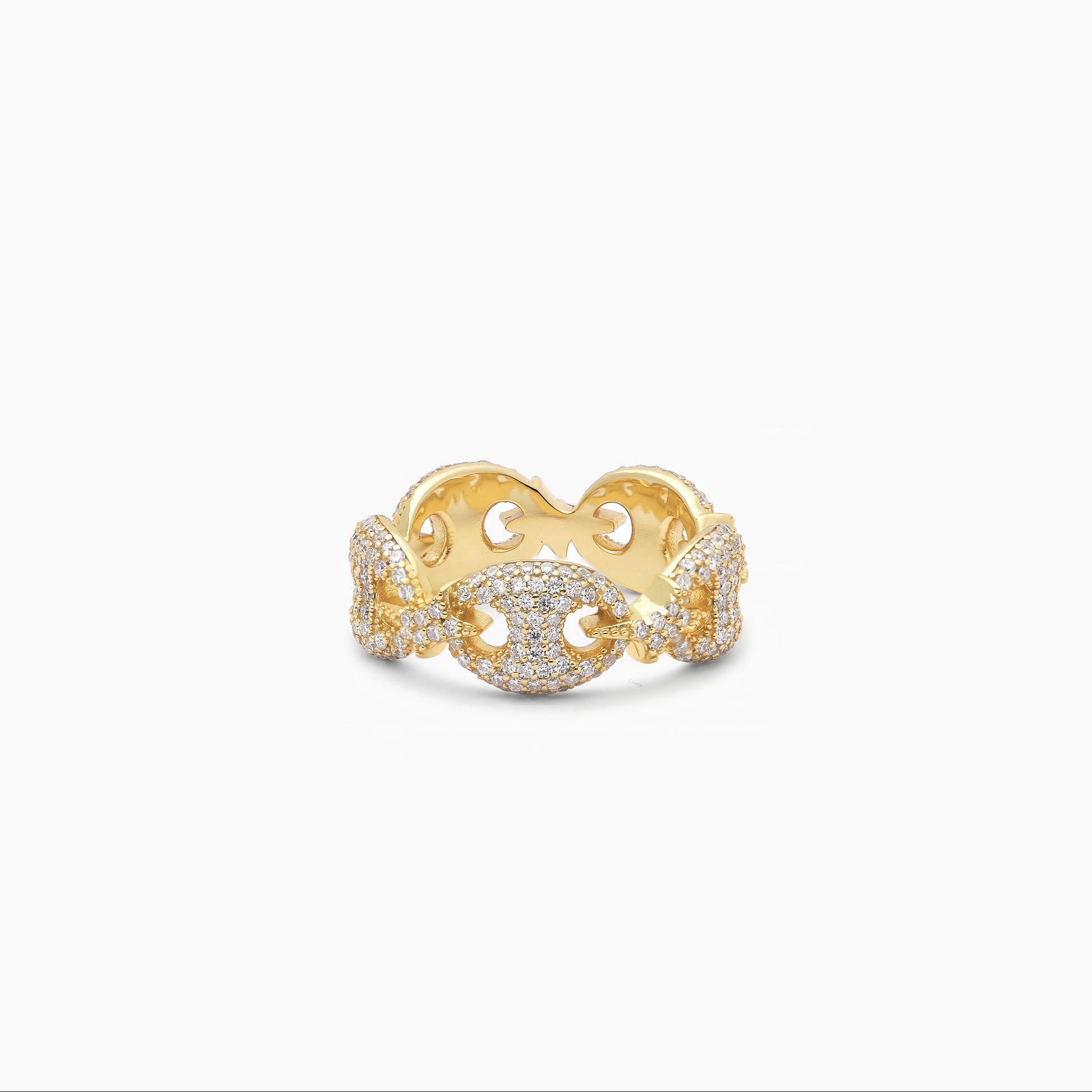 Découvrez notre Bague Iced Coffee Beans, inspirée du maillon grain de café. Chaque segment est entièrement pavé d’oxydes de zirconium pour un éclat intense, et chacun est relié par notre logo Make It Shine, affirmant une identité forte et distinctive jusque dans le détail.