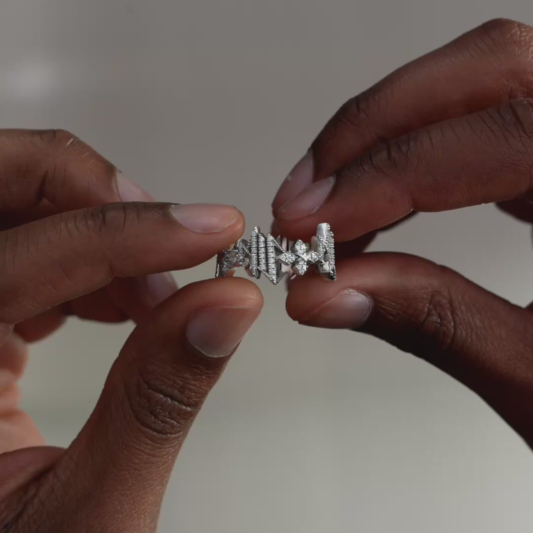 La Iced MIS Ring incarne l’alliance des deux symboles emblématiques de Make It Shine : le sigle MIS et la croix étoilée.
