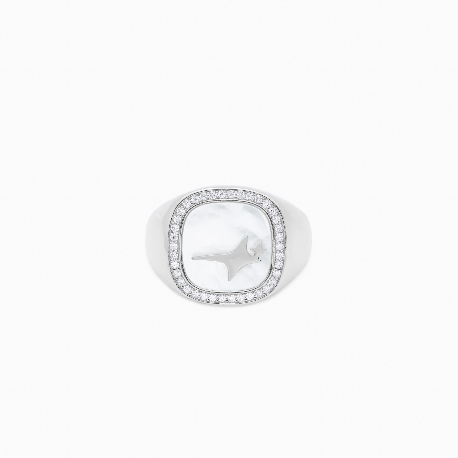 Découvrez notre Raw Ring, une chevalière au design affirmé et épuré, mise en valeur par un large plateau carré de 15 mm. Son centre, orné d’une pierre imitation nacre, contraste avec finesse avec le logo Make it Shine gravé en relief. Le tout est délicatement encerclé d’oxydes de zirconium blancs, apportant une touche d’éclat discrète mais sophistiquée.
