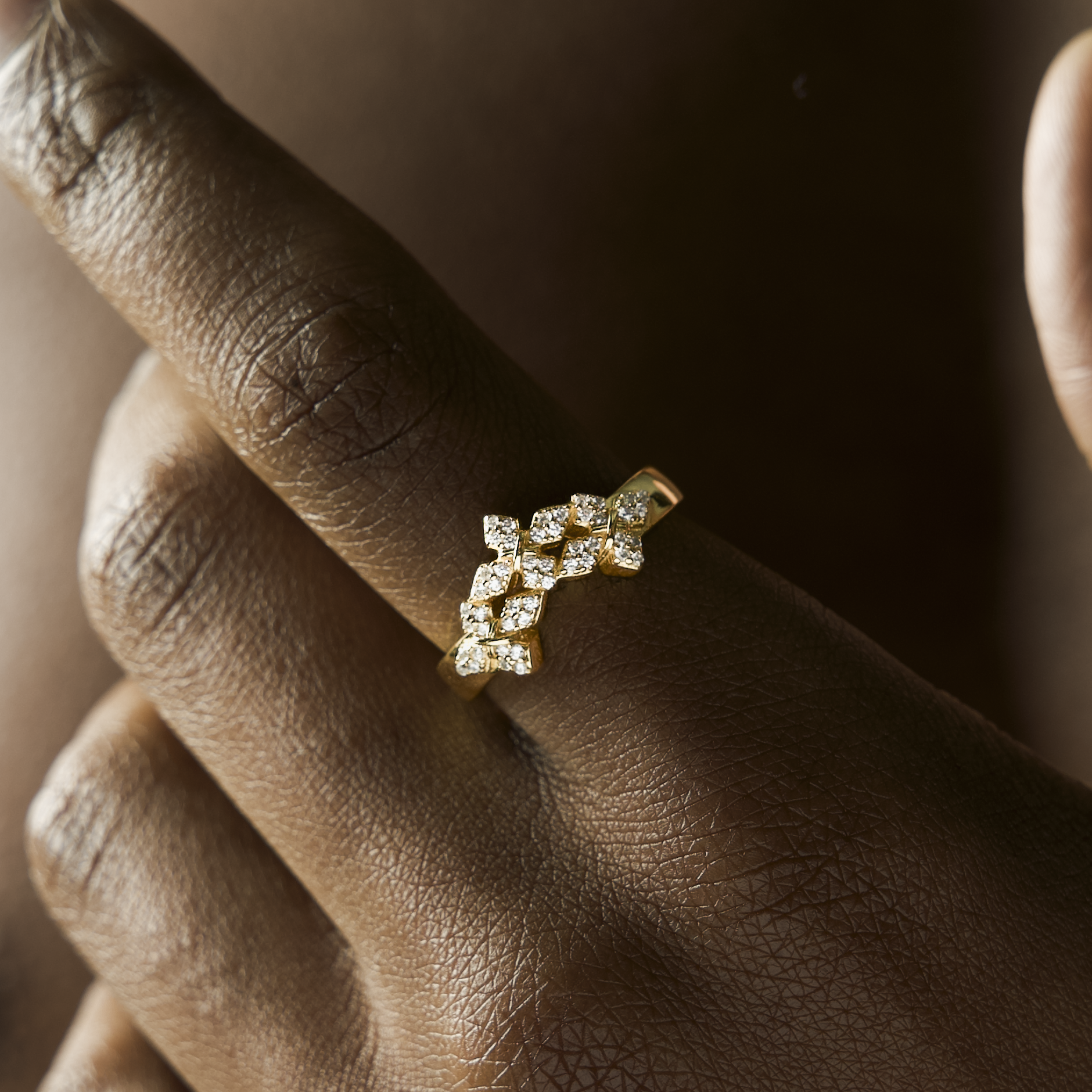 Avec son anneau de 4 mm, cette pièce impose un design fort, qui incarne la grandeur — un rappel que la lumière se révèle toujours après l’épreuve.