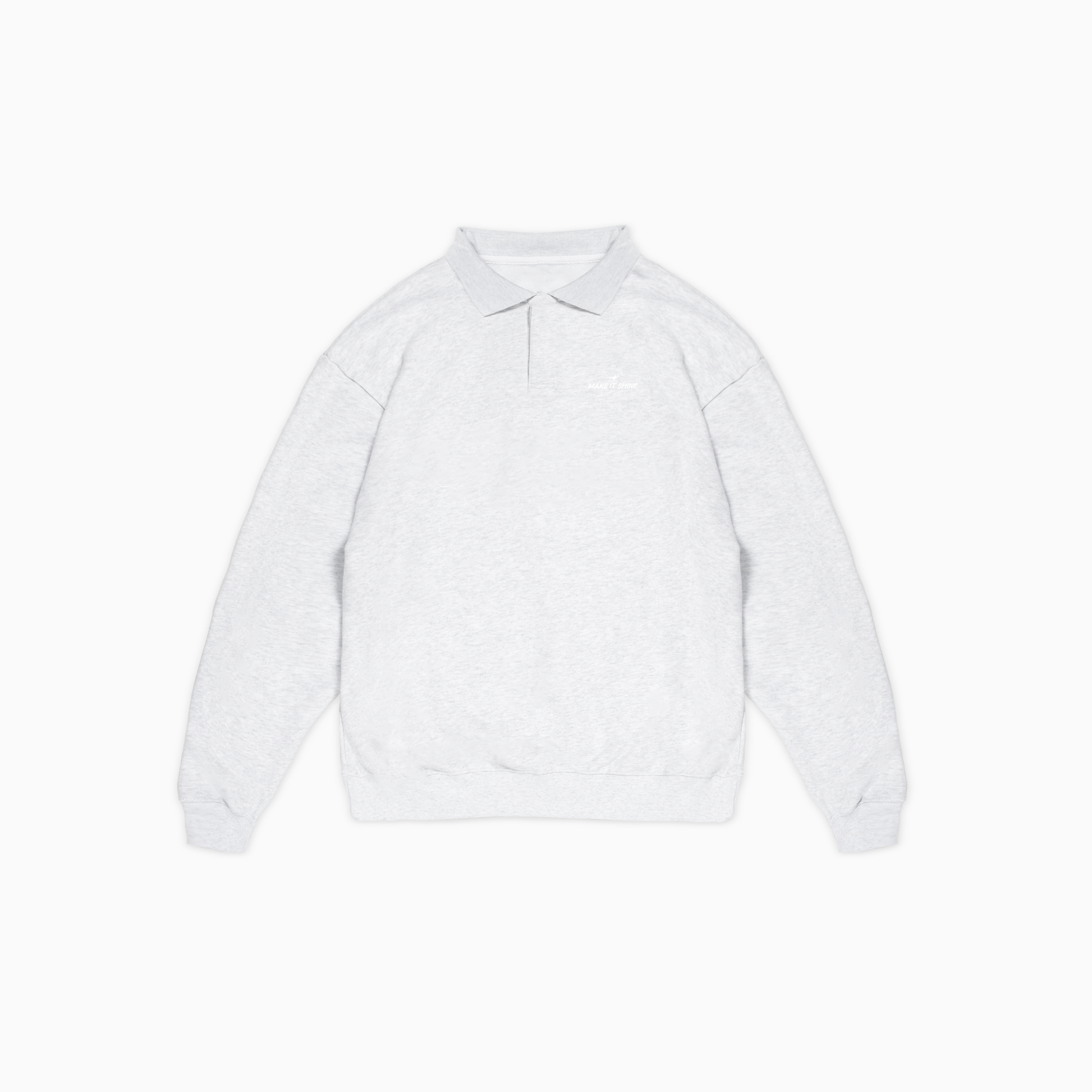 Polo sweater gris en jersey à manches longues avec une coupe oversize, fabriqué à partir d'un coton épais de qualité supérieure. Col polo avec boutons-pression. Ourlet et poignets côtelés.