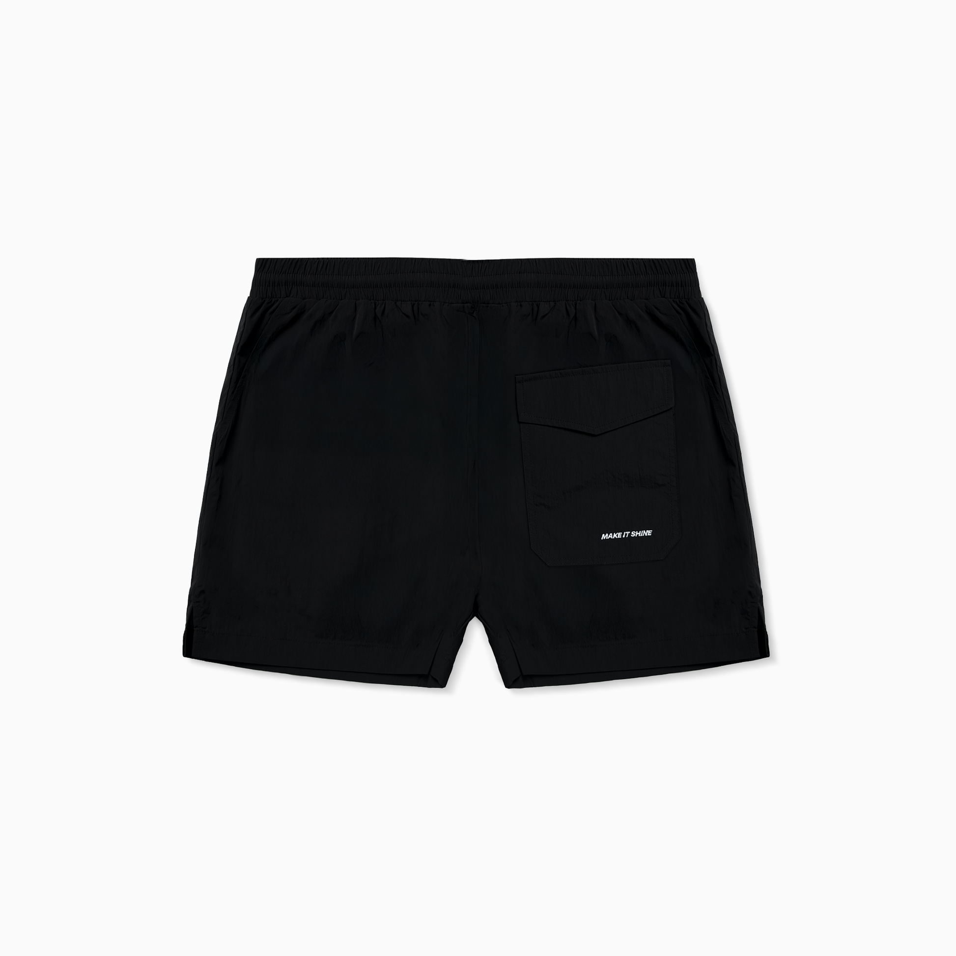 Conçu en nylon léger avec doublure en mesh, ce Swim Short Signature dispose d’une taille élastique avec cordons de serrage intérieurs pour un ajustement parfait. À l’avant, un logo étoile brodé en blanc signe la pièce, tandis qu’une poche arrière arbore discrètement la broderie “Make it Shine”.