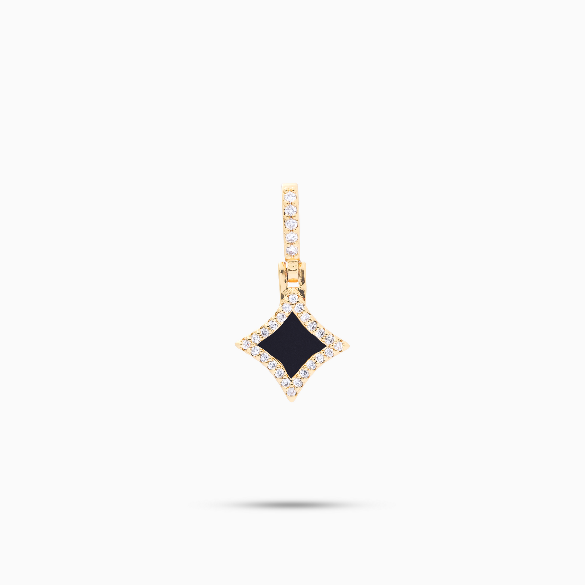 Voici notre pendentif Star, alliant élégance et éclat. Au cœur de ce bijou, une étoile sertie de pierres scintillantes met en valeur une pierre centrale en imitation onyx, le tout offrant une épaisseur de 8 mm pour un charme subtil et lumineux.