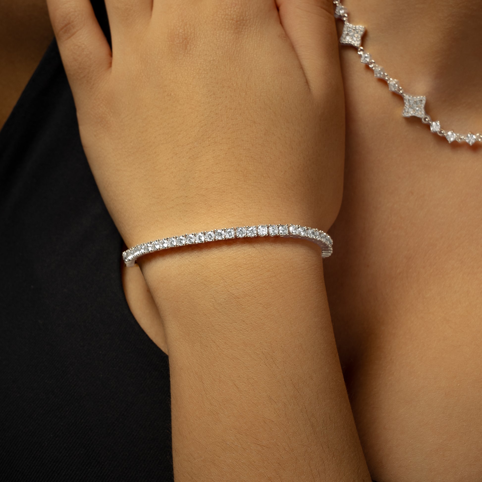 Découvrez notre Bracelet Tennis 3 mm, une pièce emblématique à la brillance maîtrisée. Chaque maillon est serti d’oxydes de zirconium étincelants, offrant un éclat continu et sophistiqué. Sa finesse de 3 mm en fait un bijou à la fois discret et percutant, parfait pour sublimer toutes vos tenues avec élégance.