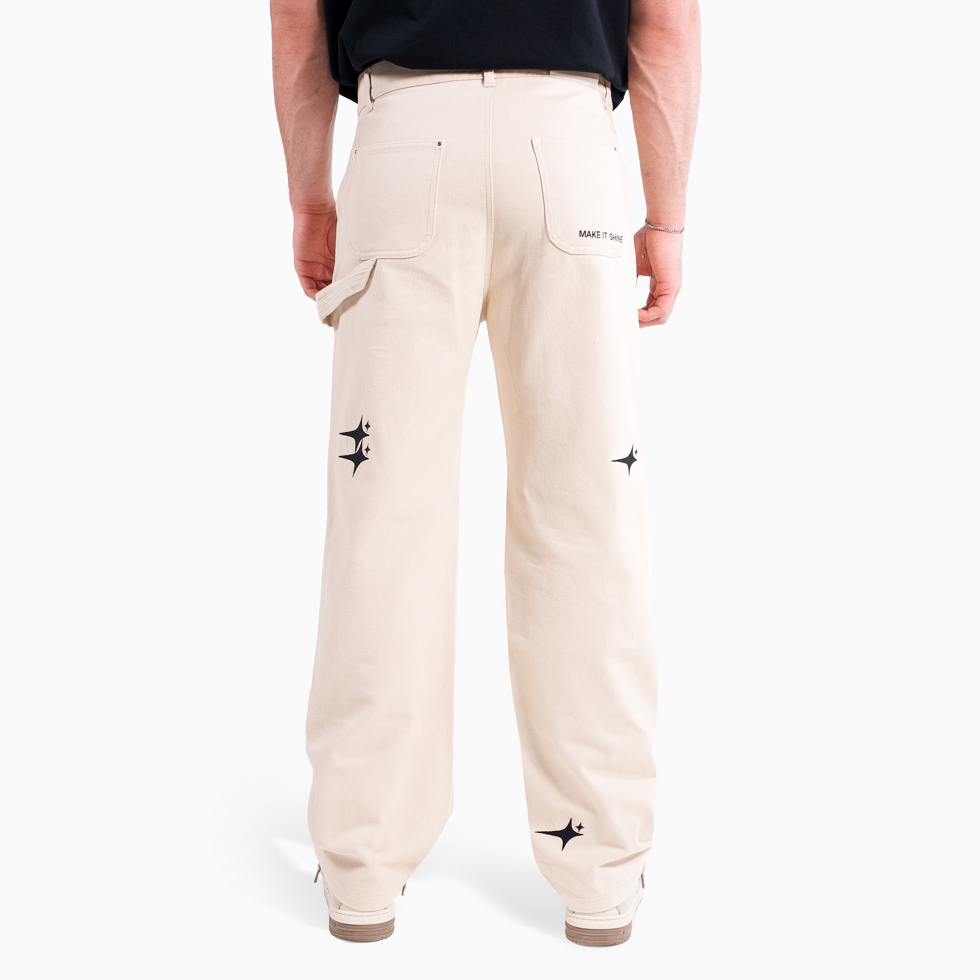 Meet our Carpenter Denim Make it Shine, a loose-fit denim pant designed for comfort and style. Made from 100% cotton, it features black embroidered logos on the front and back, as well as a "Make it Shine" embroidery on the back pocket for a distinctive touch. Custom metal hardware and a logo-engraved button closure add a touch of understated luxury to this must-have piece.