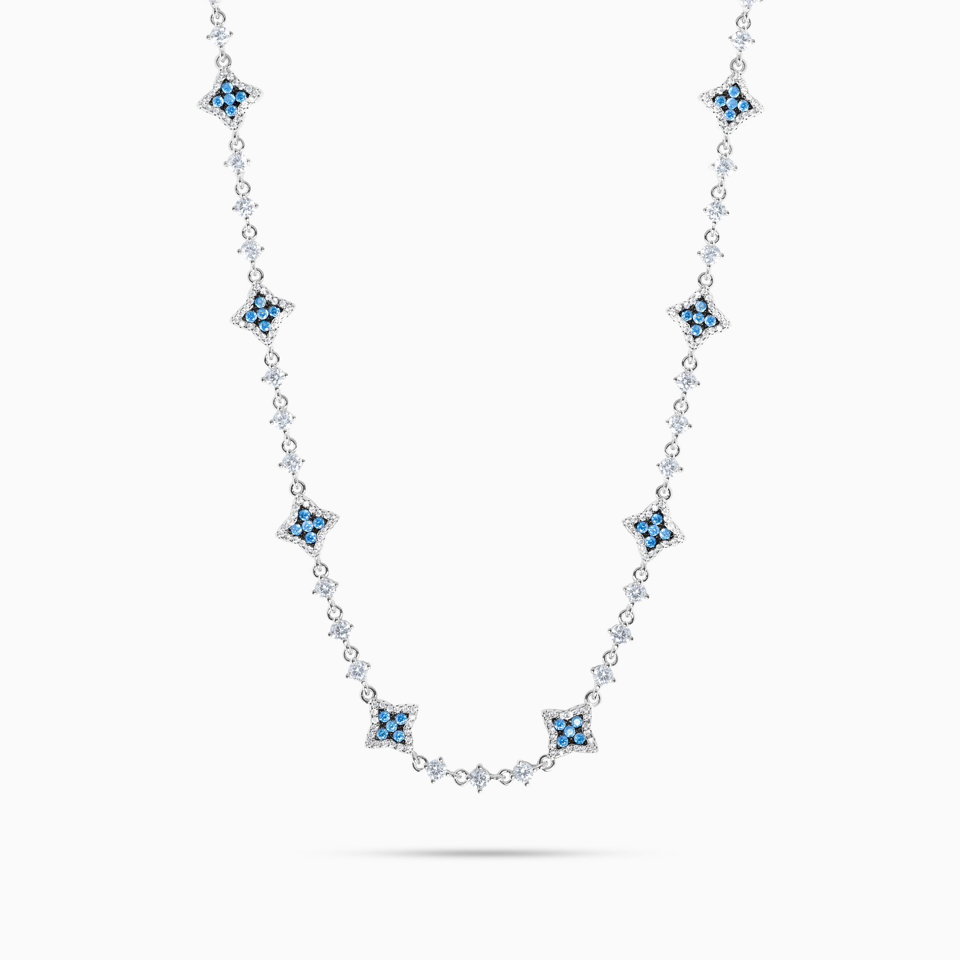 Discover our Flower Tennis Chain, an exquisite piece that combines the timeless elegance of the tennis chain with the delicacy of flowers. Each of the flowers, adorned with sparkling blue stones and measuring 8 mm thick, adds a touch of charm and sophistication to this 3 mm chain.