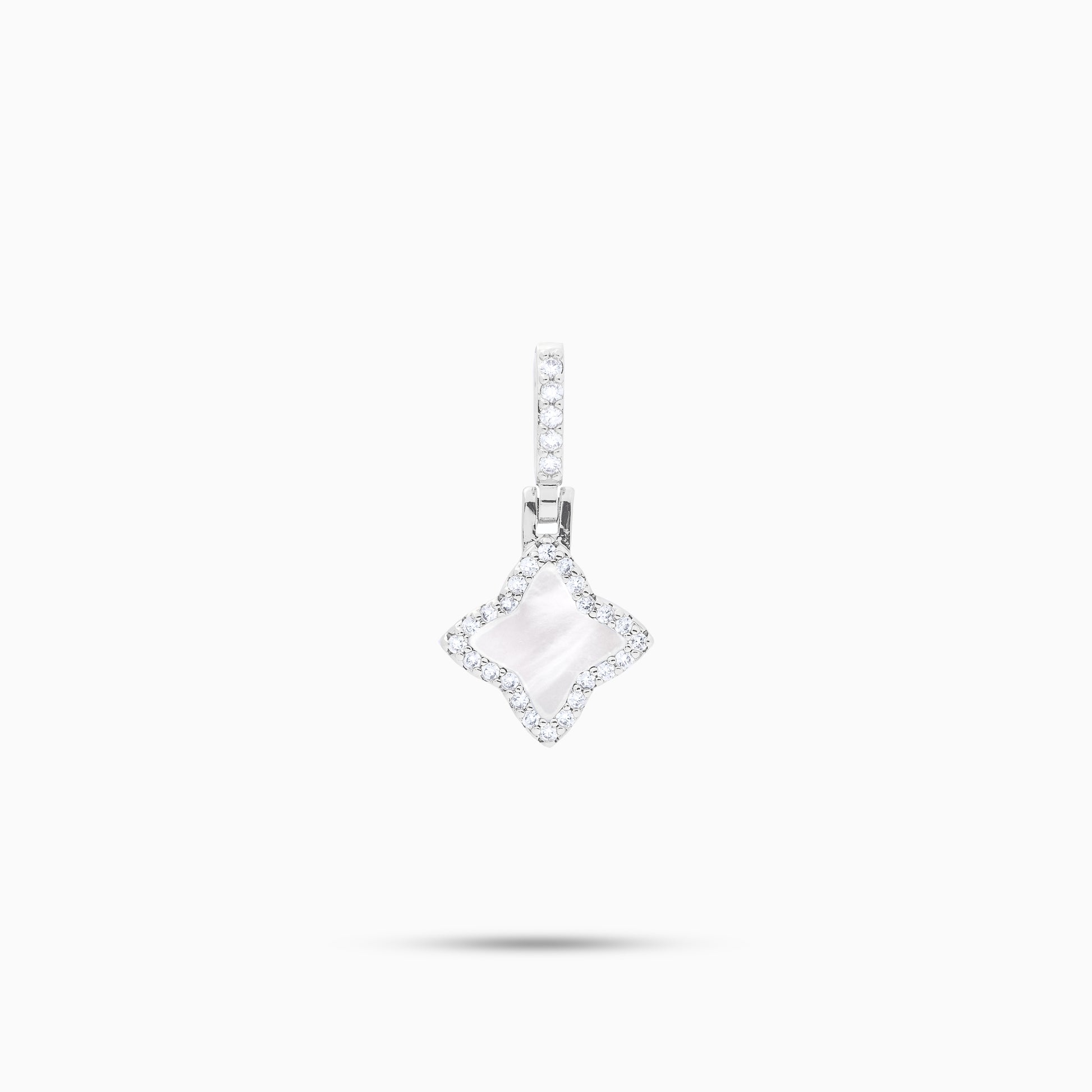 Here is our Flower pendant, combining delicacy and timeless refinement. At the heart of this jewel, a flower encrusted with sparkling stones highlights a central stone in imitation Mother-of-pearl, offering a thickness of 8 mm for a subtle and luminous charm.