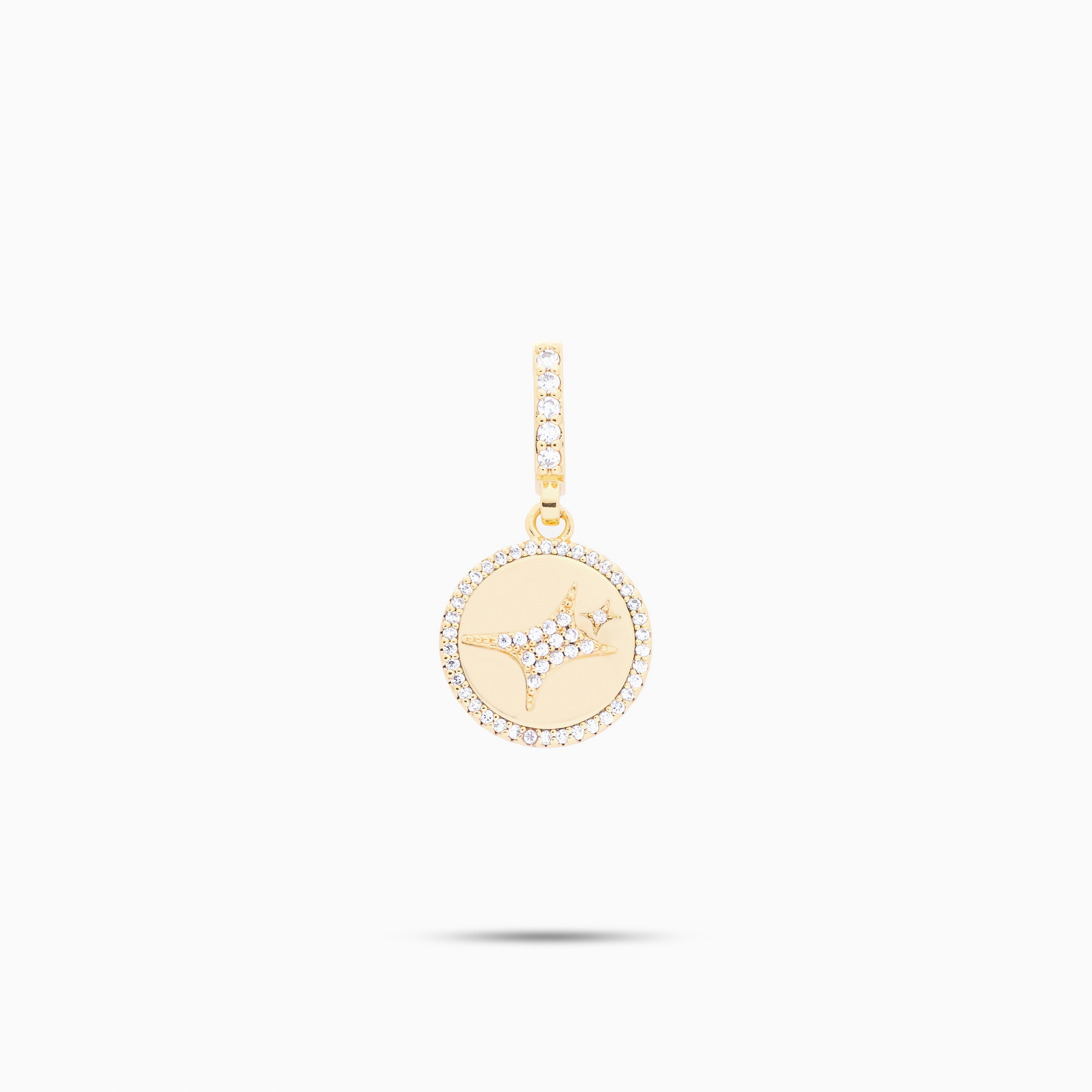 Discover our Signature Medallion, a radiant piece of jewelry that enhances our iconic star logo. With a diameter of 1.5 cm, this refined pendant is adorned with sparkling cubic zirconia, highlighting our central star. Perfect for adding a touch of sophistication and brilliance to your outfits.