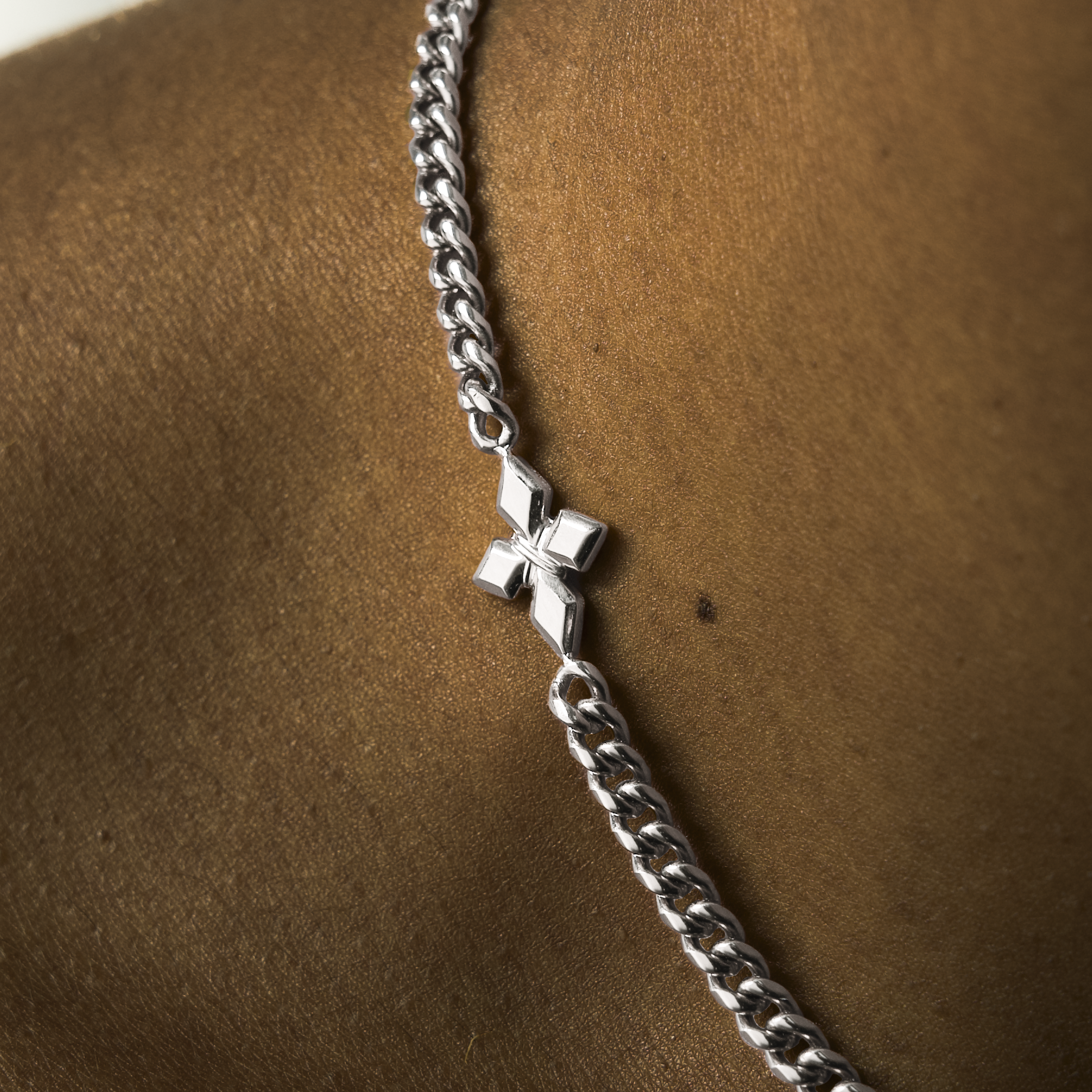 Connected by a 4mm Cuban link chain, they embody the strength, light and identity of the brand.