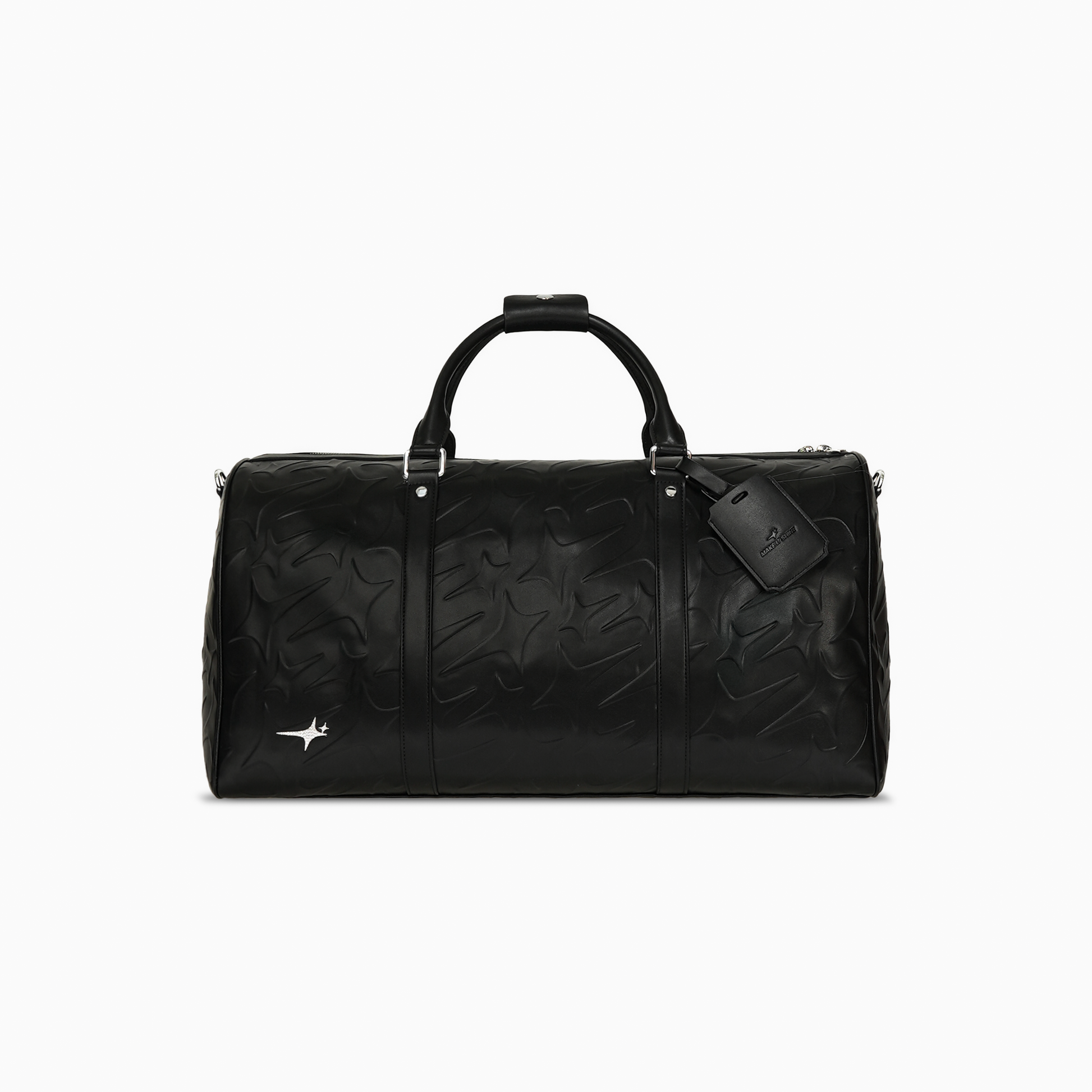 The Monogram Travel Bag, crafted in black faux leather, combines functionality with bold design. It's designed to accompany you on all your travels, from everyday life to travel. Its style is marked by the embossed Make It Shine monogram, which adds a detailed texture, and by the 3 cm metallic logo set with moissanite stones, the house's iconic signature. Practical and elegant, it's the ideal companion for an urban and sophisticated look.