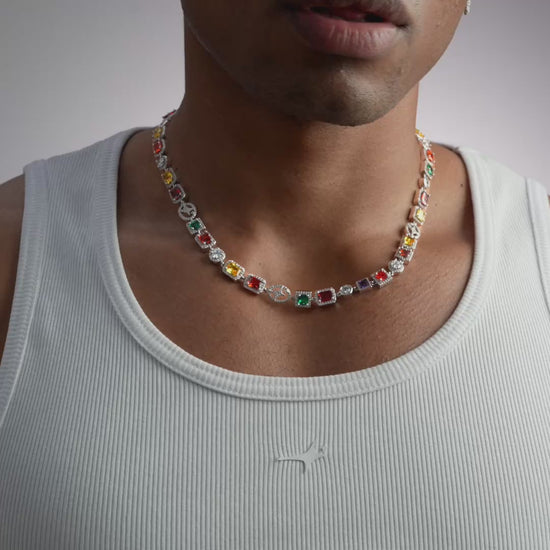 Discover our Multi Gemstone Chain, an exquisite piece that captivates with its beauty and brilliance. Each stone, varying in shape and color (yellow, red, green, and purple), is carefully selected to create a captivating visual harmony. With gems measuring 8 mm in thickness, this chain offers a true array of vibrant colors.