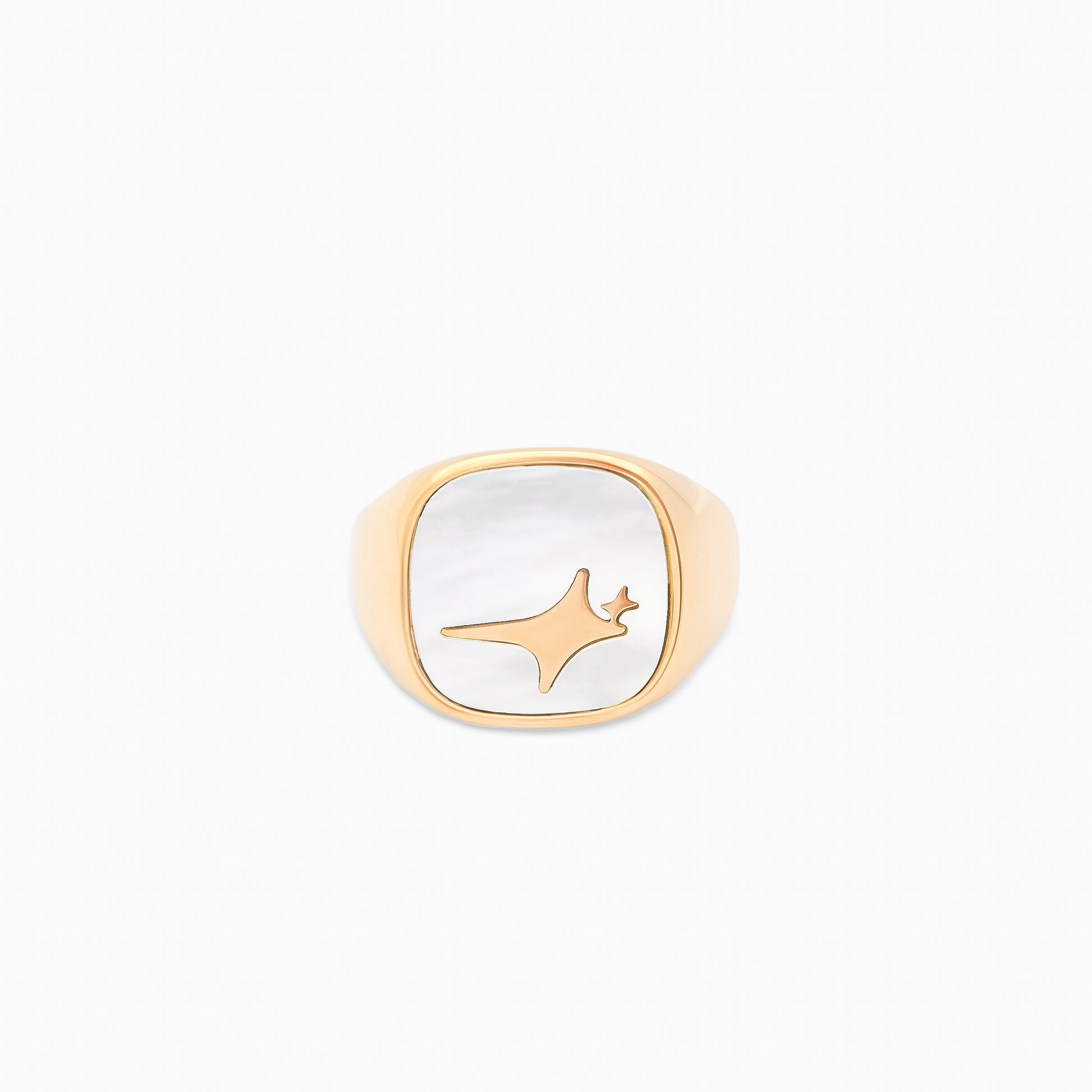 Discover our Raw Ring , a signet ring with a bold and refined design, highlighted by a large 15 mm square plate. Its center, adorned with an imitation mother-of-pearl stone, contrasts delicately with the Make it Shine logo engraved in relief.