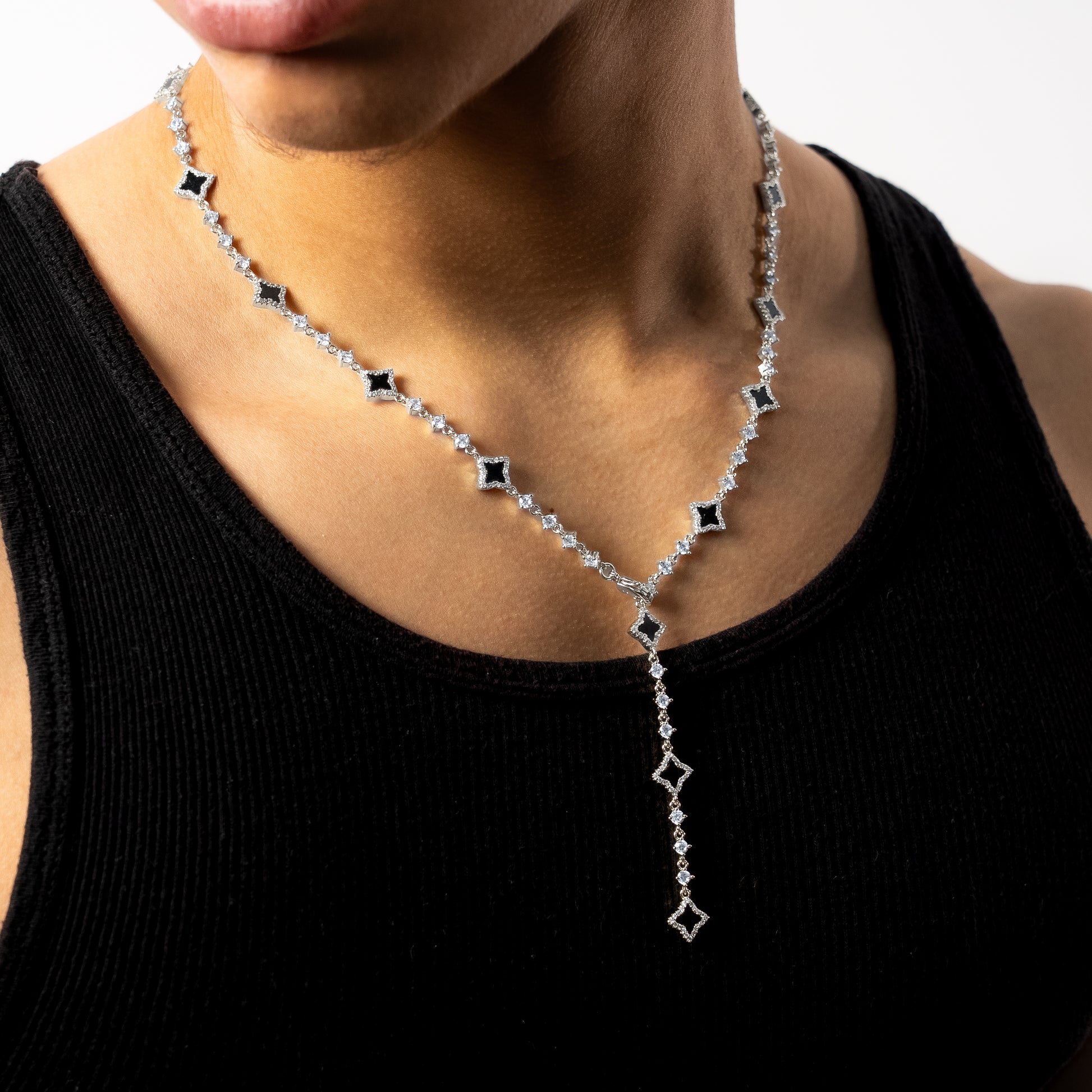 Discover our Flower Tennis Necklace, an exquisite piece that combines the timeless elegance of a tennis chain with the delicacy of flowers. Each flower, adorned with an 8mm thick faux onyx stone, adds a touch of charm and sophistication to this 3mm chain.