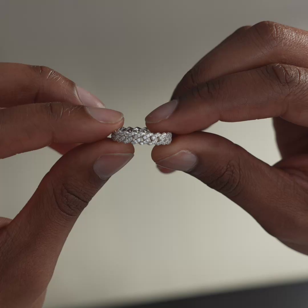 Discover our Iced Cuban link ring 5 mm, a trendy bestseller. Adorned with cubic zirconia, this ring with distinctive Cuban links adds a bold touch to your outfit.