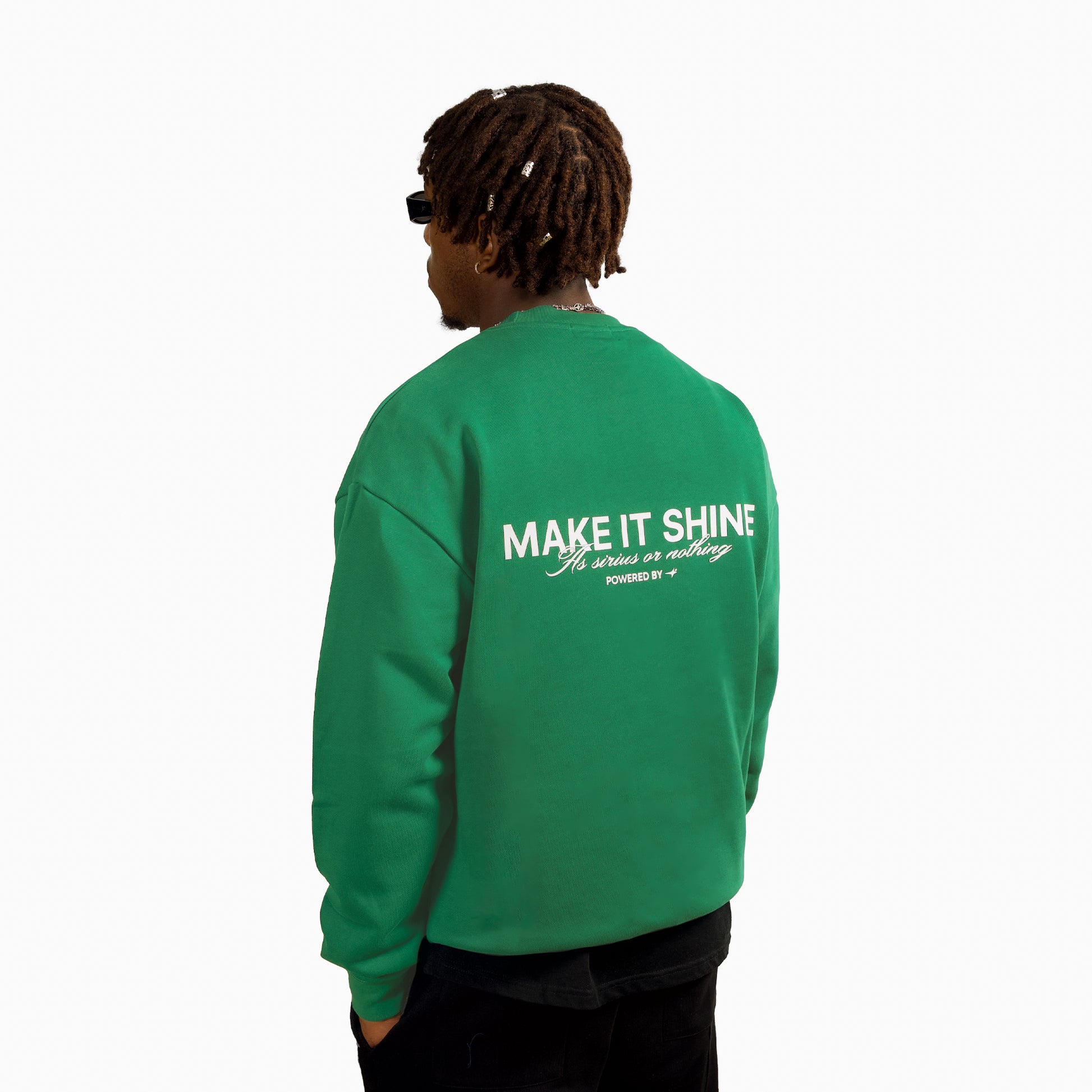 Green long sleeve jersey sweatshirt with an oversized fit, made from a premium heavyweight cotton. Ribbed crew neck.